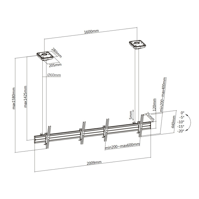 Equip 650373 Soporte de techo para doble pantalla de 45″-55