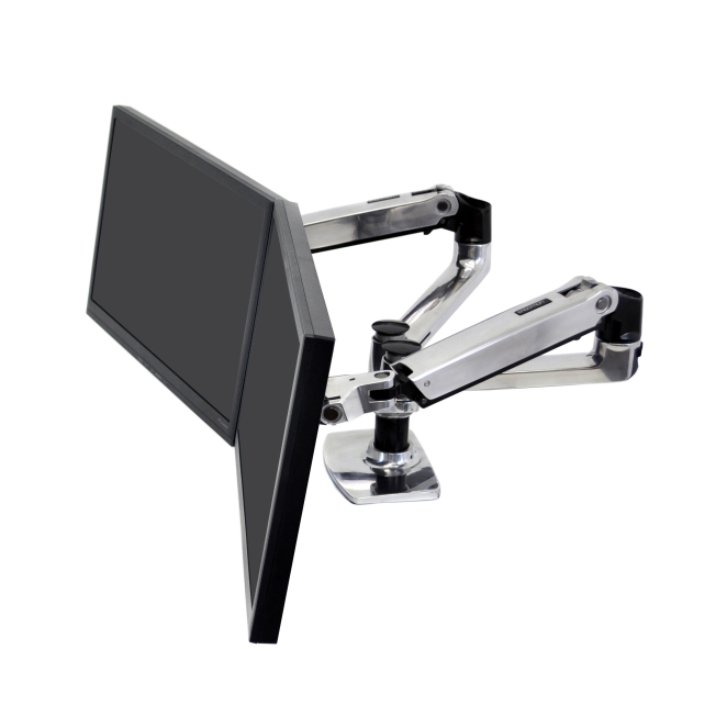 El soporte para monitor Ergotron LX Series puede soportar hasta dos monitores de 27 pulgadas cada uno.