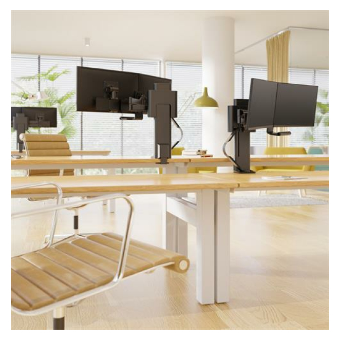 Ideal para configuraciones con dos monitores de hasta 27 pulgadas, mejorando la eficiencia y comodidad.