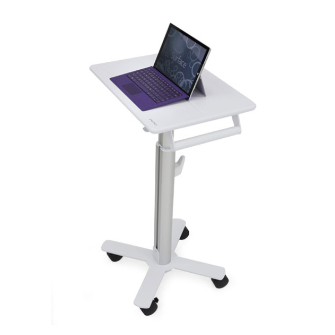 El Ergotron StyleView S-Tablet Cart, SV10 es la solución perfecta para quienes buscan un carro multimedia ligero, ajustable y de alta calidad para sus tabletas. Diseñado específicamente para Microsoft Surface, este carro de aluminio y blanco proporciona una interfaz innovadora que sostiene y coloca la pantalla según sus necesidades. El motor de elevación ajustable permite configurarlo a la altura perfecta, ya sea para trabajar de pie o sentado. Con un diseño sólido y seguro, este carro de tabletas Ergotron es la elección ideal para entornos sanitarios, educativos y profesionales que requieran movilidad y versatilidad.