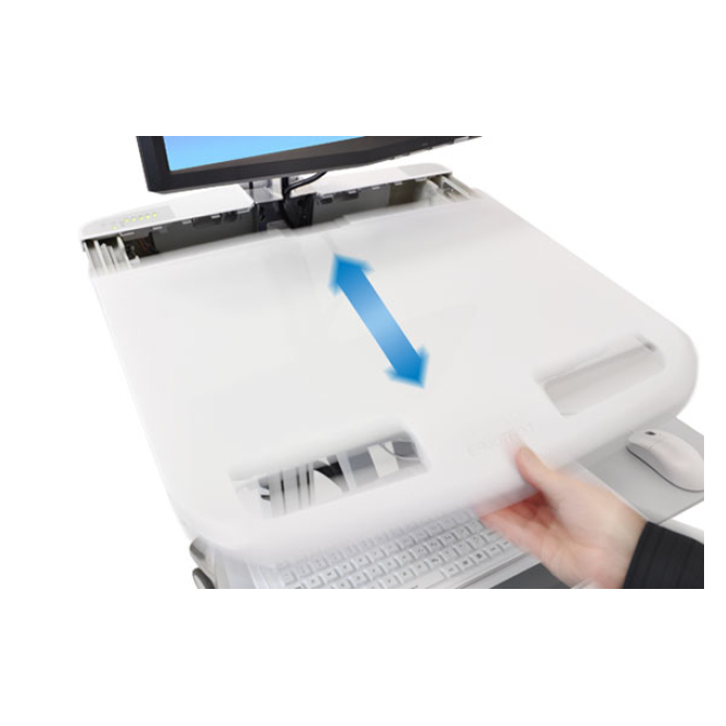 El Ergotron StyleView EMR Cart ofrece una serie de ventajas inigualables para el entorno hospitalario y de atención médica. Gracias a su carga rápida con potencia LiFe, los tiempos muertos se reducen considerablemente, permitiendo más tiempo de atención a los pacientes. Su diseño ergonómico reduce la fatiga del personal sanitario y mejora el bienestar y la productividad. Adicionalmente, el carro dispone de una bandeja de teclado ajustable, que facilita el acceso mientras se interactúa con los pacientes. Los materiales antimicrobianos utilizados minimizan el riesgo de infecciones, asegurando una mayor higiene.