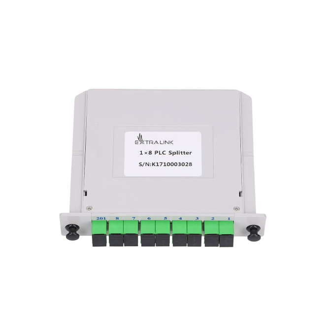 El Extralink Splitter 1:8 PLC SC/APC Slot Type es ideal para aplicaciones en redes ópticas pasivas, tanto en entornos comerciales como residenciales.