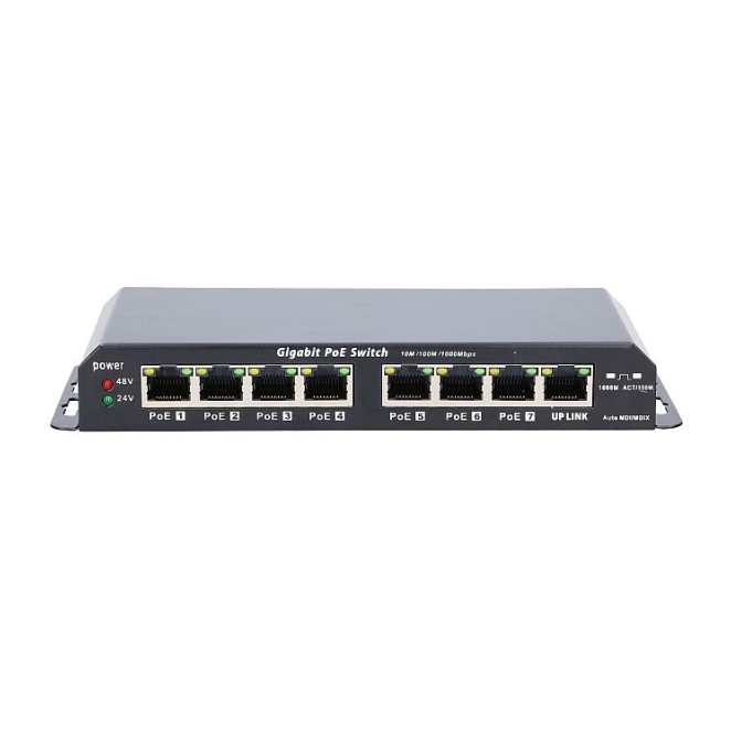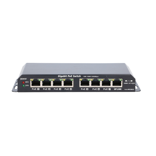 Extralink PoE Switch KRATOS 7x Gigabit PoE, 1x Uplink RJ45, fuente de alimentación 24V 2.5A, 60W