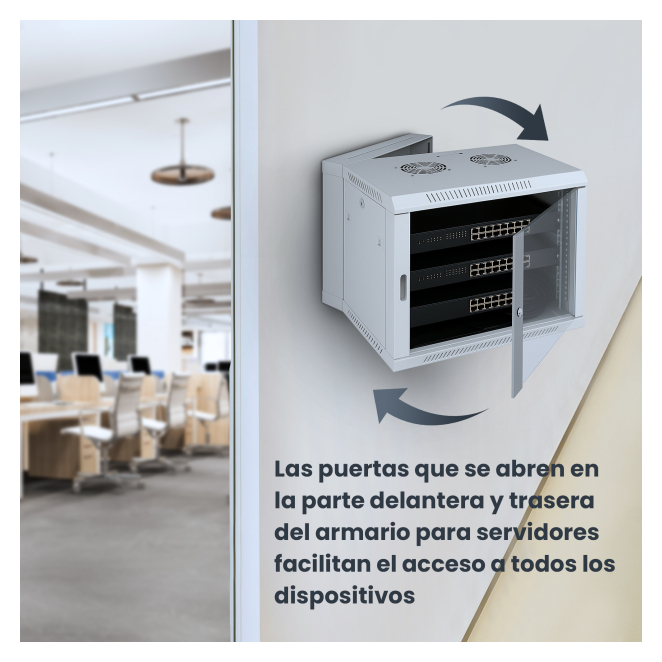 Perfecto para montaje en la pared, ayuda a economizar espacio en oficinas y salas de servidores.