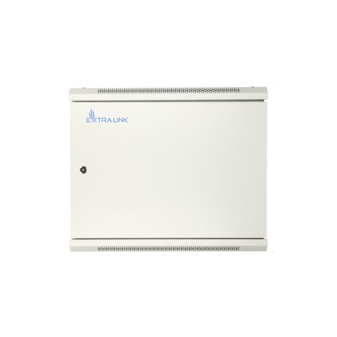 Extralink armario rackmount de 9U con dimensiones 600x450mm en color gris, montaje en la pared, puerta de metal. SKU EX.13018