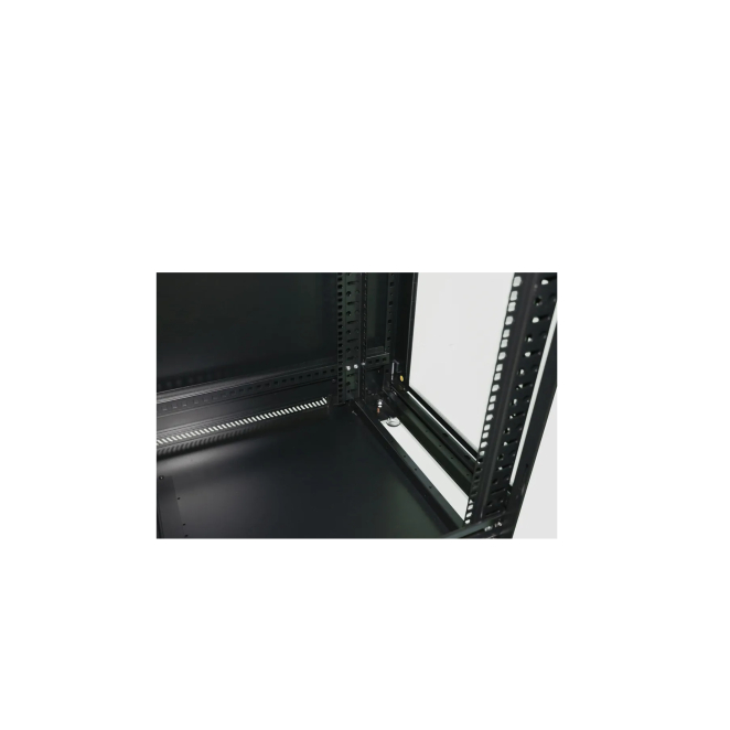 Extralink Armario rackmount 32U 800×800 Negro de pie destaca por diversas ventajas que le confieren una elección ideal para almacenar y organizar servidores y equipos de red. Sus paredes de acero y vidrio templado aseguran una alta resistencia y seguridad. La capacidad de 32U permite la instalación de diversos equipos sin preocuparnos por el espacio disponible. Además, cuenta con puertas delanteras y laterales desmontables que facilitan el acceso y la instalación de dispositivos. Sus rieles claramente marcados, sistema de gestión de cables y enfriamiento pasivo garantizan un entorno de operatividad eficiente y libre de desorden.