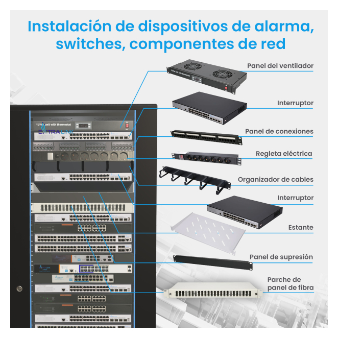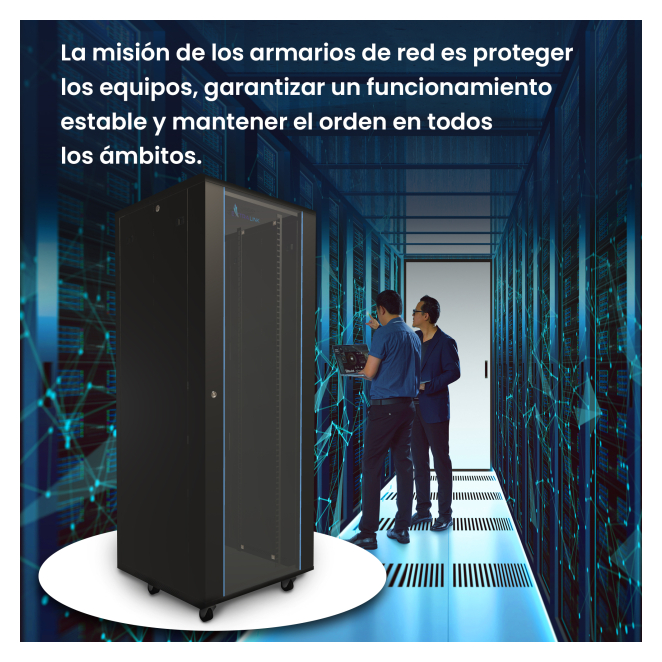 - Alta capacidad de almacenamiento: Su altura de 37U permite acomodar una gran cantidad de equipos.