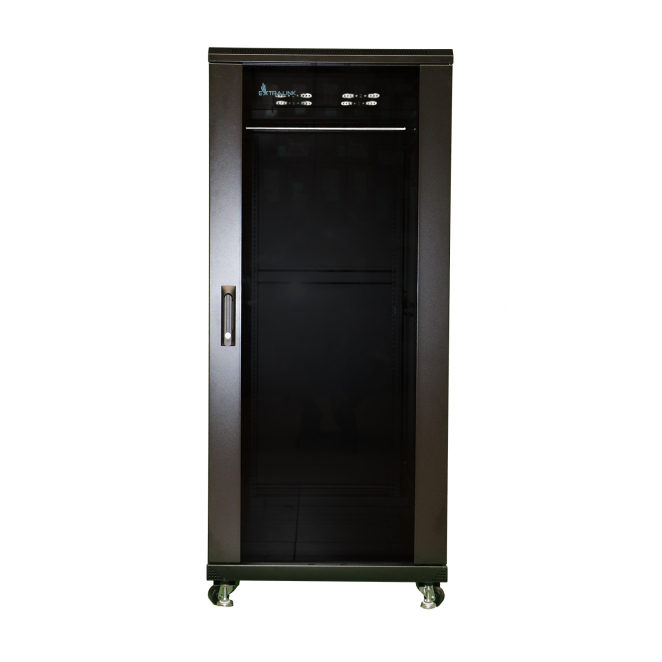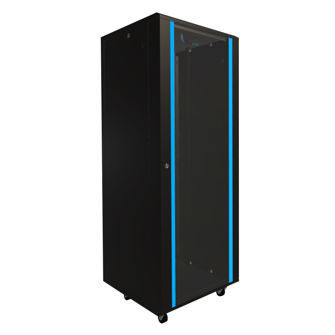 Extralink Armario Rackmount 37U, dimensiones 600×600 mm, color negro, SKU EX.14428. Ideal para almacenamiento seguro de equipos de red.