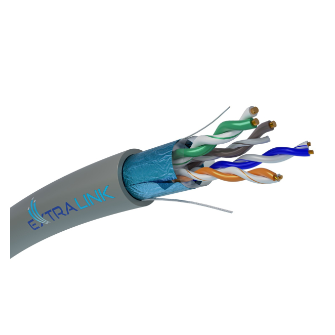 Extralink par trenzado CAT5E FTP F/UTP interno de 305 metros, SKU EX.18259, ideal para redes de alta velocidad y bajo ruido.