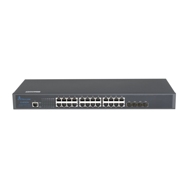 Extralink Interruptor Chiron con 24 puertos RJ45 1000Mb/s y 4 puertos SFP+, SKU EX.19720
