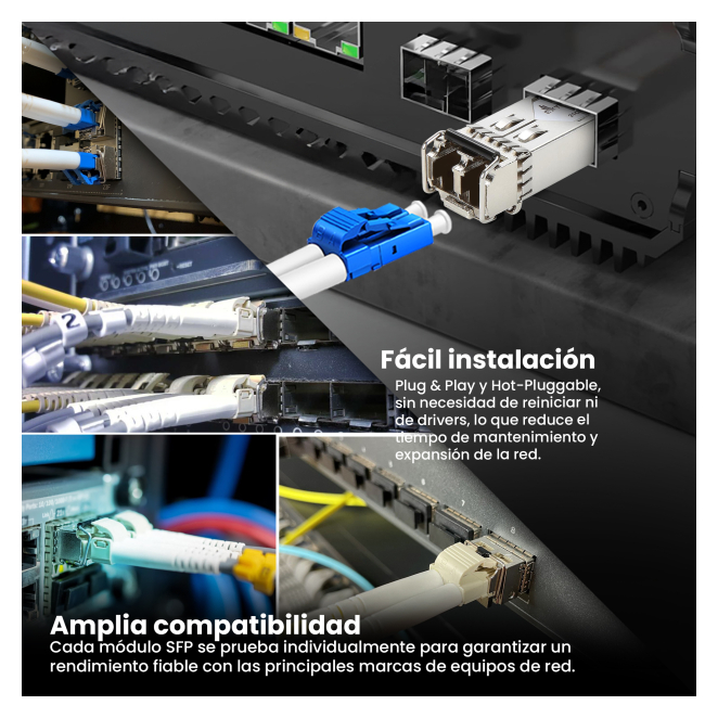 Diseñados para ofrecer una señal estable y de alta calidad, estos módulos SFP aseguran una transmisión de datos eficiente y sin interrupciones.