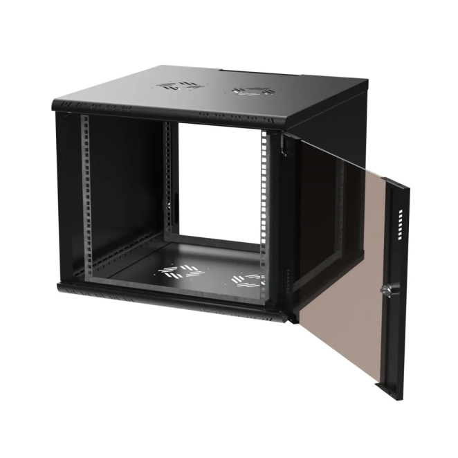 Armario rack 9U de pared de la marca Extralink, color negro, SKU EX.39359, para organizar y proteger equipos de red.