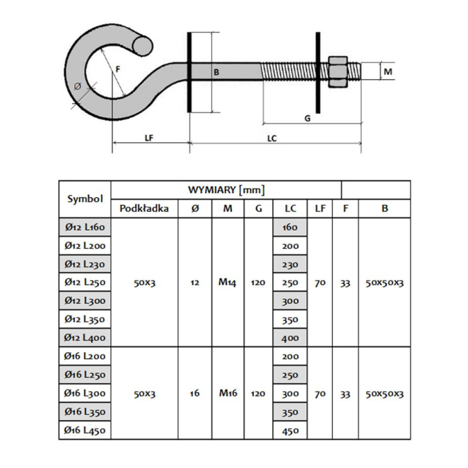 Cada paquete contiene un único gancho de 12/350mm.