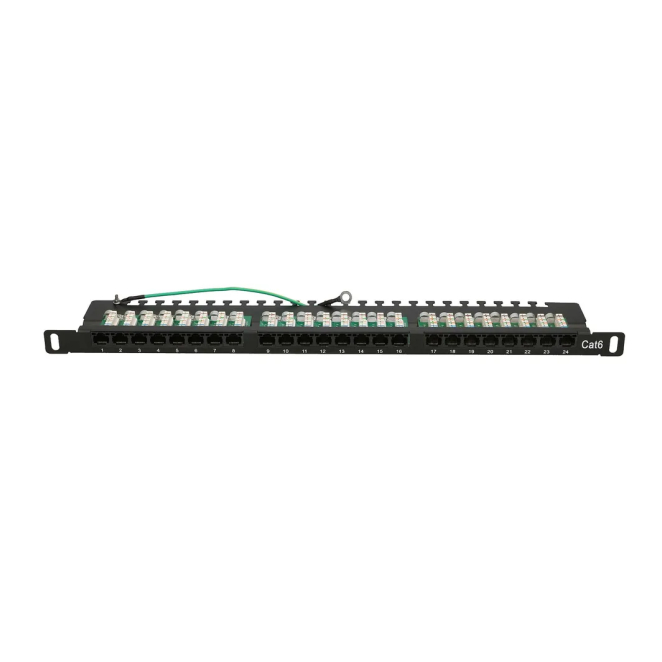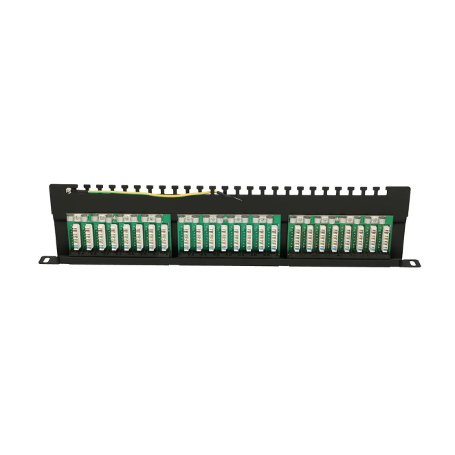 El panel de parche se instala fácilmente en rieles de armarios rack de 19″ y es compatible con tornillos estándar, haciendo que el montaje sea sencillo.