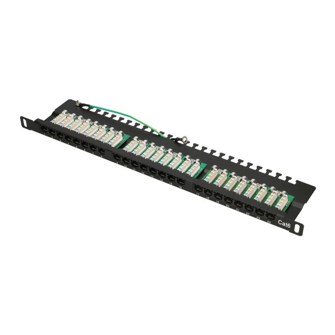 El Extralink Patchpanel CAT6 UTP 0,5U 24 puertos es una pieza esencial en la infraestructura de cableado estructurado. Este panel de parche está diseñado para montarse en rieles de armarios rack de 19″, facilitando la terminación de los cables en el armario de distribución con sus 24 puertos RJ-45 de categoría 6. La altura de 0.5U permite optimizar el espacio, pudiendo instalar dos paneles de parche en una sola unidad de montaje (1U), obteniendo hasta 48 puertos. Ideal para conexiones rápidas y profesionales, el Extralink Patchpanel CAT6 UTP ofrece una solución eficiente y de alta calidad para cualquier instalación de red.