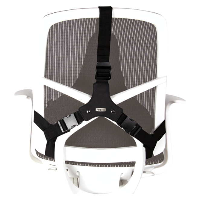El Fellowes Professional Series Negro se puede ajustar fácilmente mediante su sistema de correas, que permite adaptar el soporte a diferentes tamaños y tipos de sillas.