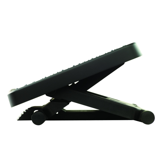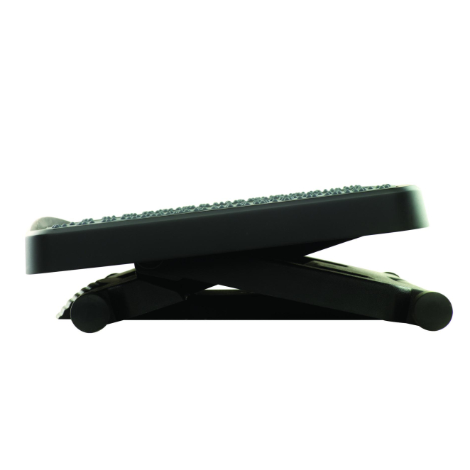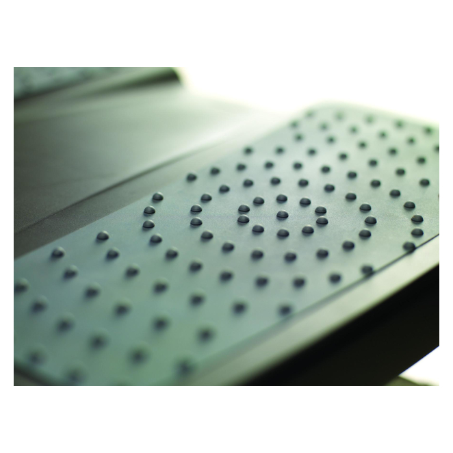 Vista frontal del soporte para el apoyo de pies Fellowes negro, modelo 8067001, ergonómico y ajustable para oficina