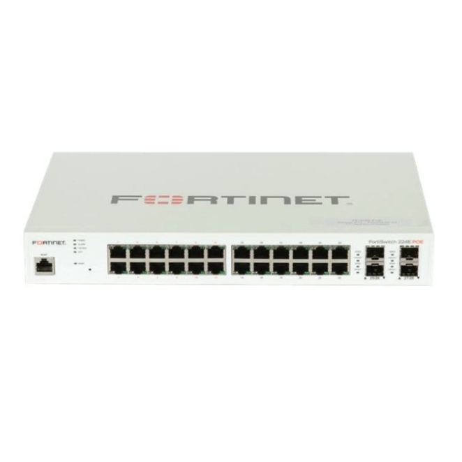 1 x FortiSwitch-224E-POE Layer 2/3 FortiGate switch controller compatible PoE+ switch with 24 x GE RJ45 ports, 4 x GE SFP, with automatic Max 180W POE output limit