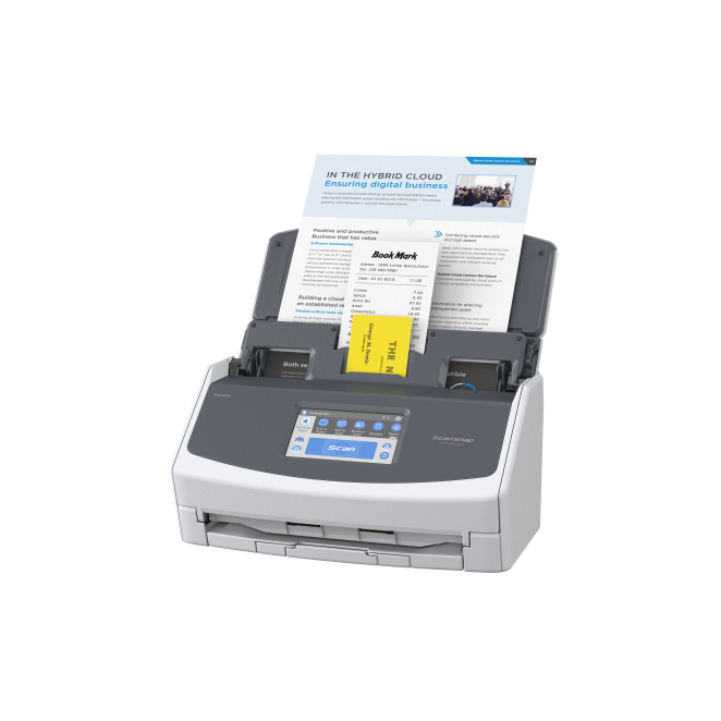 Sí, la instalación es muy sencilla gracias a su conectividad WiFi y a una interfaz de usuario intuitiva. El Ricoh ScanSnap iX1600 puede escanear hasta 40 páginas por minuto, lo que lo hace ideal para entornos con alto volumen de trabajo. Sí, el Ricoh ScanSnap iX1600 es compatible tanto con sistemas operativos Mac como con Windows. Los documentos pueden ser almacenados localmente o en la nube, lo que facilita el acceso y el intercambio de información. Sí, la conectividad WiFi permite escanear directamente desde dispositivos móviles, lo que ofrece una mayor flexibilidad. No, el Ricoh ScanSnap iX1600 está diseñado para requerir un mantenimiento mínimo, lo que ahorra tiempo y costes a largo plazo. Tamaño máximo de escaneado 216 x 360 mm Resolución óptica de escáner 600 x 600 DPI Escaner a color Sí Escaneado dúplex Sí Velocidad de escaneo ADF (b/n, A4) 40 ppm País de origen China Tipo de escaneado Alimentador automático de documentos (ADF) + escáner de alimentación manual Color del producto Blanco Pantalla TFT Pantalla incorporada Sí Pantalla táctil Sí Diagonal de la pantalla 4.3 " Tipo de sensor Colour CIS Fuentes de luz LED RGB Formatos de archivo para escaneo JPG, PDF Controladores de escaneado ISIS, ScanSnap Capacidad de entrada estándar 50 hojas Tipos de media soportados de escaneo Post Card(JPN), Tarjeta de visita ISO tamaño de serie A (A0...A9) A3, A4, A5 ISO tamaño de serie B (B0...B9) B4, B5, B6 Carta Sí Legal Sí Puerto USB Sí Conector USB USB Tipo B Versión USB 2.0/3.2 Gen 1 (3.1 Gen 1) Wifi Sí Wi-Fi estándares 802.11b, 802.11g, Wi-Fi 4 (802.11n) Tipo de fuente de alimentación Corriente alterna Frecuencia de entrada AC 50 - 60 Hz Cumplimiento de sostenibilidad Sí Certificados de sostenibilidad ENERGY STAR Certificados de conformidad RoHS Intervalo de temperatura operativa 5-35 °C Intervalo de humedad relativa para funcionamiento 20-80 % Ancho 292 mm Profundidad 161 mm Altura 152 mm Peso 3400 g Cantidad por paquete 1 pieza(s) Ancho del paquete 247 mm Profundidad del paquete 399 mm Altura del paquete 236 mm Peso del paquete 4800 g Cables incluidos Corriente alterna Adaptador AC incluido Sí
