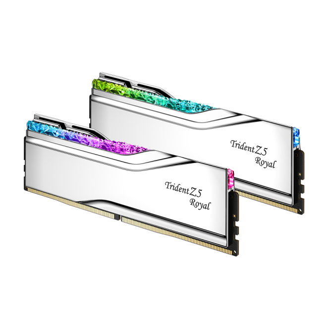 G.Skill Trident Z5 Royal módulo de memoria 64 GB en dos unidades de 32 GB, tipo DDR5 con velocidad de 6400 MT/s y 288 pines, SKU F5-6400J3239G32GX2-TR5S