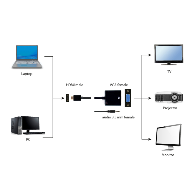 El Gembird A-HDMI-VGA-03 está dirigido a una amplia variedad de usuarios. Es ideal para profesionales que necesitan conectar notebooks modernos a proyectores o monitores más antiguos en entornos laborales o educativos. También es perfecto para gamers que desean usar monitores VGA con sus consolas HDMI. Asimismo, aquellos que trabajan en la creación de contenido multimedia pueden beneficiarse del convertidor HDMI a VGA para usar diferentes tipos de pantallas mientras editan. En general, cualquier persona que necesite una solución rápida y eficaz para conectar dispositivos HDMI a pantallas VGA encontrará en este adaptador su mejor aliado.