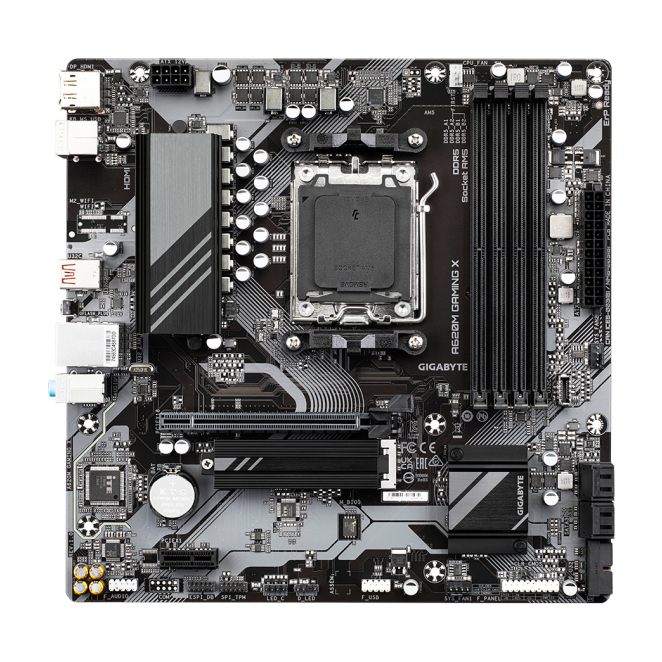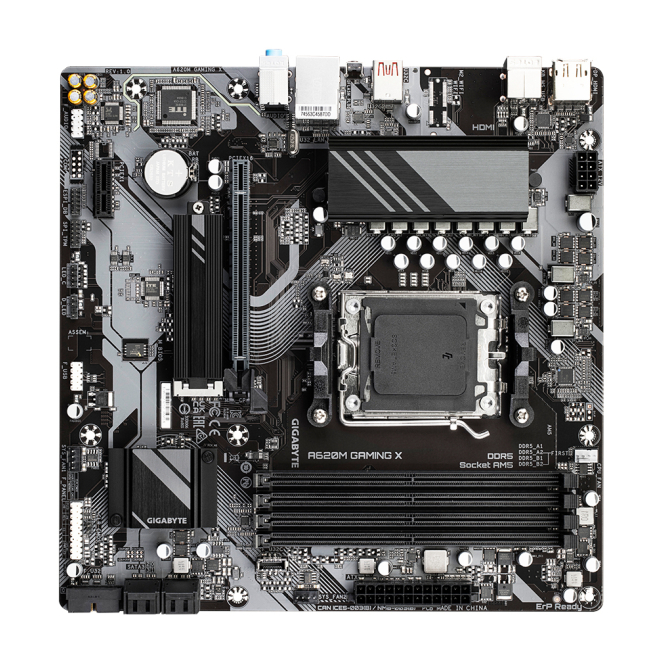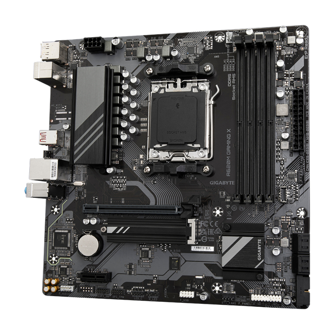 GIGABYTE A620M GAMING X Placa base – Soporta CPUs AMD Ryzen 8000, VRM digital de 8+2+1 fases, hasta 8000MHz DDR5 (OC), 1xPCIe 4.0 M.2, LAN GbE, USB 3.2 Gen 2