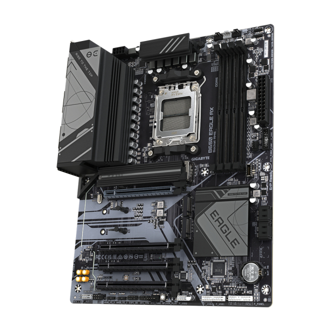 Placa base GIGABYTE B650 EAGLE AX con soporte para AMD Ryzen serie 9000, VRM de 12+2+2 fases, hasta 7600 MHz DDR5 (OC), una ranura PCIe 5.0, dos ranuras PCIe 4.0 M.2, LAN GbE, WiFi 6E y USB 3.2 Gen 2. SKU: B650 EAGLE AX Stock disponible en nuestros almacenes Financiado desde: 9,21 € /mes Solicita información en caso de necesitar envío urgente. Métodos de pago: GIGABYTE B650 EAGLE AX Placa base – AMD Ryzen serie 9000