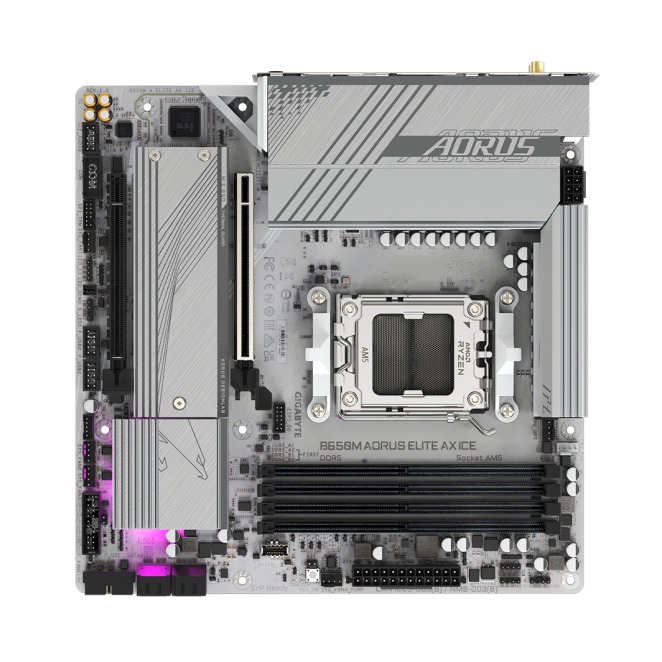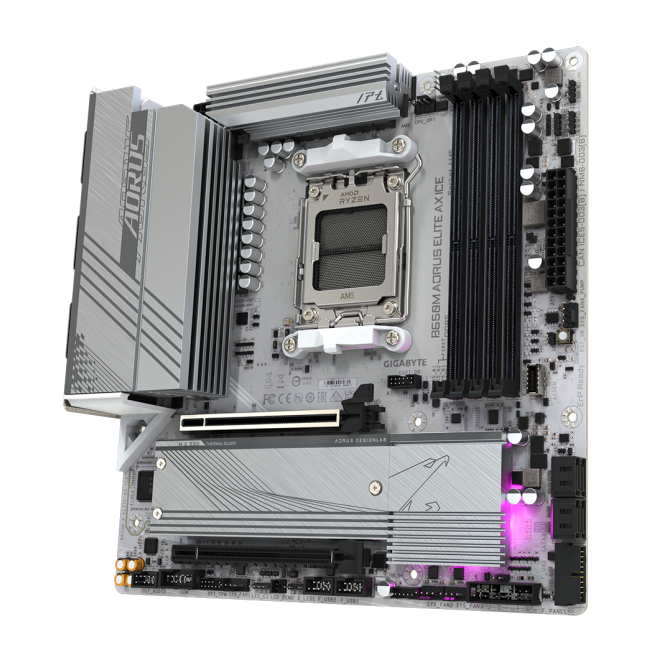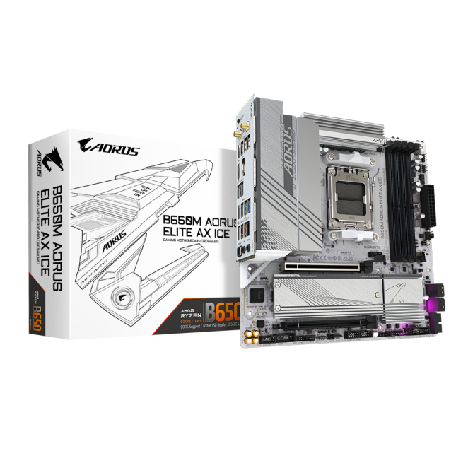 GIGABYTE B650M AORUS ELITE AX ICE Placa base – AMD Ryzen serie 9000, VRM de 12+2+2 fases, hasta 8000 MHz DDR5 (OC), 1xPCIe 5.0 + 1xPCIe 4.0 M.2, LAN 2,5 GbE, WIFI 6E, USB 3.2 Gen 2×2