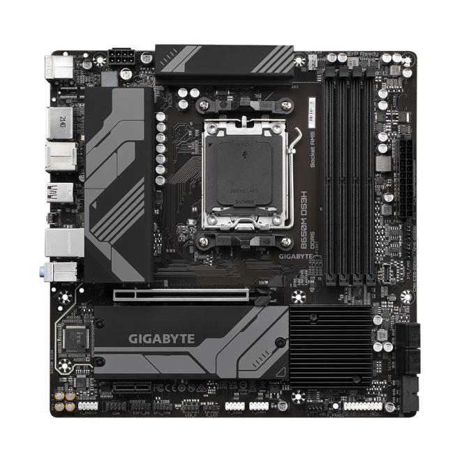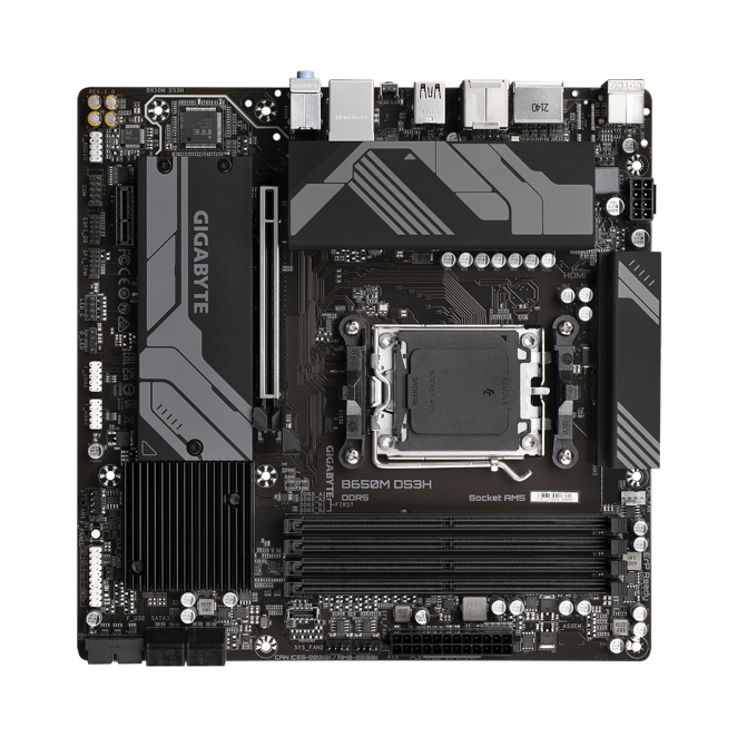 Placa base GIGABYTE B650M DS3H con soporte para AMD Ryzen serie 9000, VRM de 6+2+1 fases, hasta 8000 MHz DDR5 (OC), 2xPCIe 4.0 M.2, LAN 2.5 GbE y USB 3.2 Gen 2. SKU: B650M DS3H