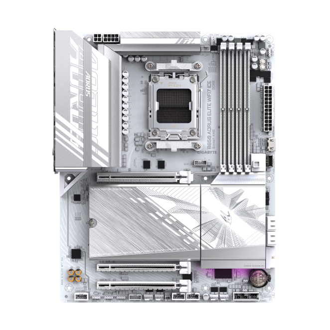 GIGABYTE B850 AORUS ELITE WIFI7 ICE, placa base compatible con procesadores AMD Ryzen Serie 9000, VRM digital de 14+2+2 fases, soporta DDR5 hasta 8200MHz OC, cuenta con 1xPCIe 5.0 y 2xPCIe 4.0 M.2, LAN 2.5, WiFi 7 y USB 3.2 Gen 2×2, SKU B850 A ELITE WF7 ICE