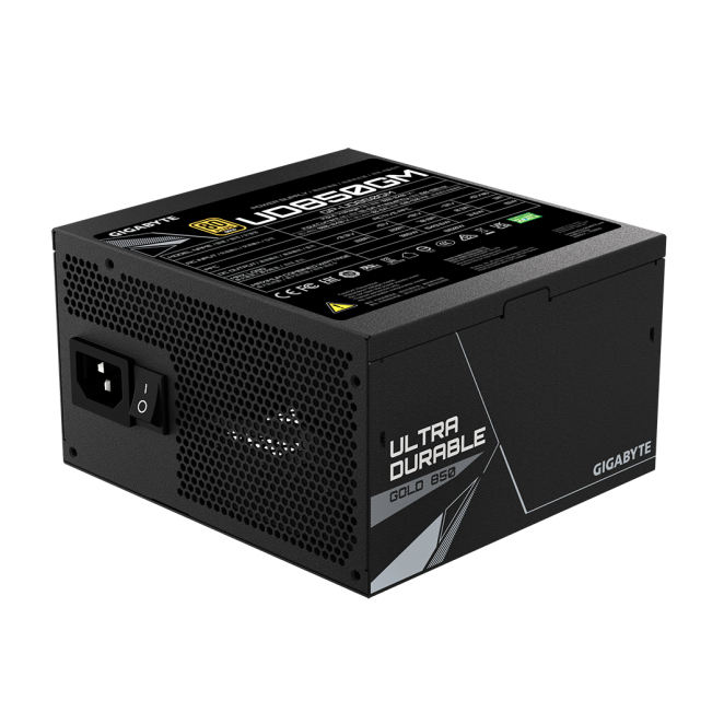 Imagen de GIGABYTE UD850GM, unidad de fuente de alimentación de 850 W en color negro y con conector 20+4 pin ATX. SKU GP-UD850GM.