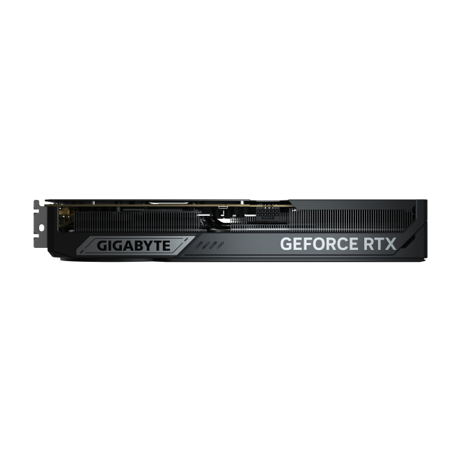 Vista frontal de la tarjeta gráfica GIGABYTE GeForce RTX 5070 Ti WINDFORCE SFF 16G, con 16GB GDDR7, 256bit, PCI-E 5.0, 2452 MHz frecuencia del núcleo, 3 x DP 2.1b, 1 x HDMI 2.1b, NVIDIA DLSS 4. SKU: GV-N507TWF3-16GD