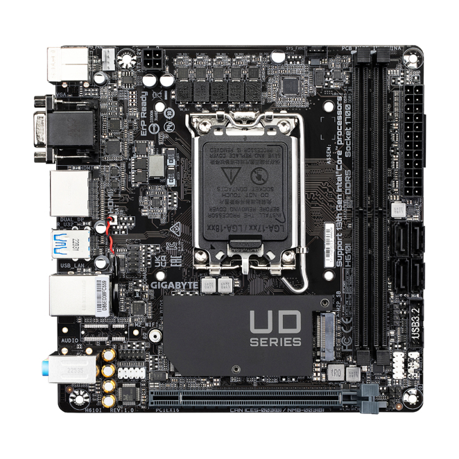 GIGABYTE H610I Placa base – Soporta CPUs Intel Core de 14ª generación, VRM digital híbrido 4+1+1, hasta 5600MHz DDR5, 1xPCIe 3.0 M.2, LAN GbE, USB 3.2 Gen 1