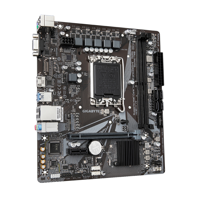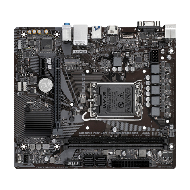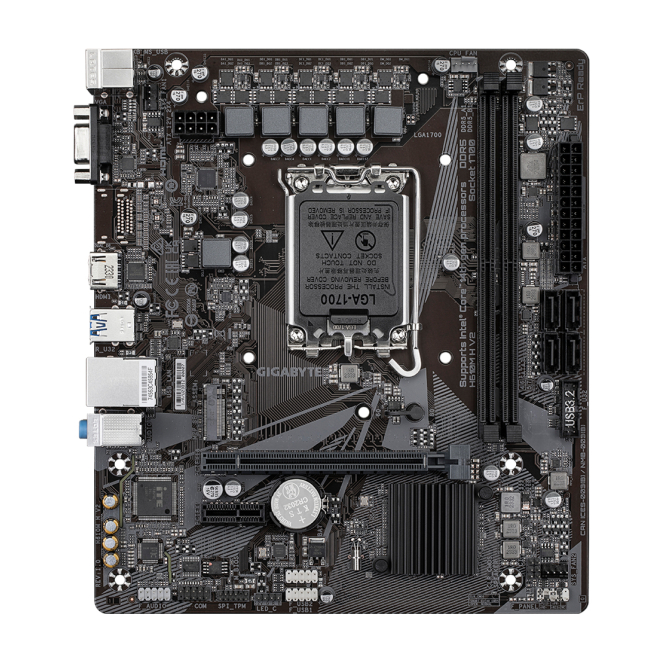 Al elegir una GIGABYTE H610M H V2 Placa base, eliges calidad, rendimiento y confiabilidad. La memoria DDR5 ofrece velocidades superiores, incrementando el rendimiento de tu PC y mejorando la eficiencia en la ejecución de tareas. Maximiza el potencial de los últimos procesadores de Intel. Incluye puertos USB 3.2 Gen 1, LAN Gigabit y ranuras PCIe 3.0. Construcción robusta y chipset Intel H610 que garantiza un largo ciclo de vida. Aquí respondemos algunas de las preguntas más comunes sobre la GIGABYTE H610M H V2 Placa base: La GIGABYTE H610M H V2 es compatible con procesadores Intel Core de 14ª generación, asegurando rendimiento y capacidad de respuesta avanzadas. La placa base GIGABYTE H610M H V2 soporta memoria DDR5 con una velocidad de hasta 5600MHz. La GIGABYTE H610M H V2 cuenta con 2 ranuras DIMM para memoria DDR5, permitiendo hasta 96GB de memoria interna. Sí, la GIGABYTE H610M H V2 incluye una ranura PCIe 3.0 que permite ampliar las capacidades de tu PC, ideal para tarjetas gráficas y de almacenamiento. Sí, esta placa base tiene una ranura PCIe 3.0 M.2, permitiendo la instalación rápida de unidades SSD. Fabricante de procesador Intel Socket de procesador LGA 1700 Procesador compatible Intel® Celeron®, Intel® Core™ i3, Intel® Core™ i5, Intel® Core™ i7, Intel® Core™ i9, Intel® Pentium® Gold Sockets de procesador soportados LGA 1700 tipos de memoria compatibles DDR5-SDRAM Número de ranuras de memoria 2 Tipo de ranuras de memoria DIMM Compatibilidad de ECC ECC y no ECC Velocidades de reloj de memoria soportadas 4400 MHz, 4800 MHz, 5200 MHz, 5600 MHz Velocidad del reloj de memoria máxima admitida 5600 MHz Memoria interna máxima 96 GB Canales de memoria Doble canal Memoria sin buffer Sí Tipos de unidades de almacenamiento admitidas HDD & SSD Interfaces de disco de almacenamiento soportados M.2, SATA III Graphics chipset Intel Adaptador gráfico HD Graphics HDCP Sí Soporte para proceso paralelo No compatible Máxima resolución 4096 x 2304 Pixeles Conectores USB 3.2 Gen 1 (3.1 Gen 1) 1 Conector de potencia ATX (24 pines) Sí Conector TPM Sí Conector eléctrico de 12 V Sí USB 2.0, conectores 2 Número de conectores SATA III 4 Conector de ventilador CPU Sí Conector de energía EPS (8-pin) Sí Conector de audio en panel frontal Sí Conector para tiras LED RGB Sí Ethernet LAN (RJ-45) cantidad de puertos 1 Número de puertos HDMI 1 Cantidad de puertos tipo A USB 3.2 Gen 1 (3.1 Gen 1) 2 Cantidad de puertos VGA (D-Sub) 1 Número de puertos HDMI 1 Cantidad de DisplayPorts 2 Cantidad de puertos USB 2.0 4 Ethernet Sí Wifi No Tipo de interfaz ethernet Gigabit Ethernet Chipset Intel H610 Express Familia del chipset Intel Sistema operativo Windows soportado Windows 10 x64, Windows 11 x64 Canales de salida de audio 7.1 canales Componente para PC Monitoreo de la salud de PC Temperatura, Tensión, Ventilador, Water cooling Color del producto Negro Número de ranuras M.2 (M) 1 Tipos de BIOS UEFI AMI BIOS, tamaño de memoria 128 MB/s Versión ACPI 5.0 Versión de BIOS de administración del sistema (SMBIOS) 2.7 Jumper Clear CMOS Sí Versión de la interfaz de administración de escritorio (DMI) 2.7 Ancho 230 mm Profundidad 196 mm Altura 35 mm Peso de la batería 3 g Peso de litio por batería 0.07 g Número de celdas de batería 1 Peso de la batería 3 g Tecnología de batería Lithium-Manganese Dioxide (LiMnO2) Tipo de batería CR2032 Cables incluidos SATA Pilas incluidas Sí Software incluido Norton Internet Security (OEM version) LAN bandwidth management software Peso del paquete 694 g Ancho del paquete 265 mm Periodo de garantía 3 año(s)
