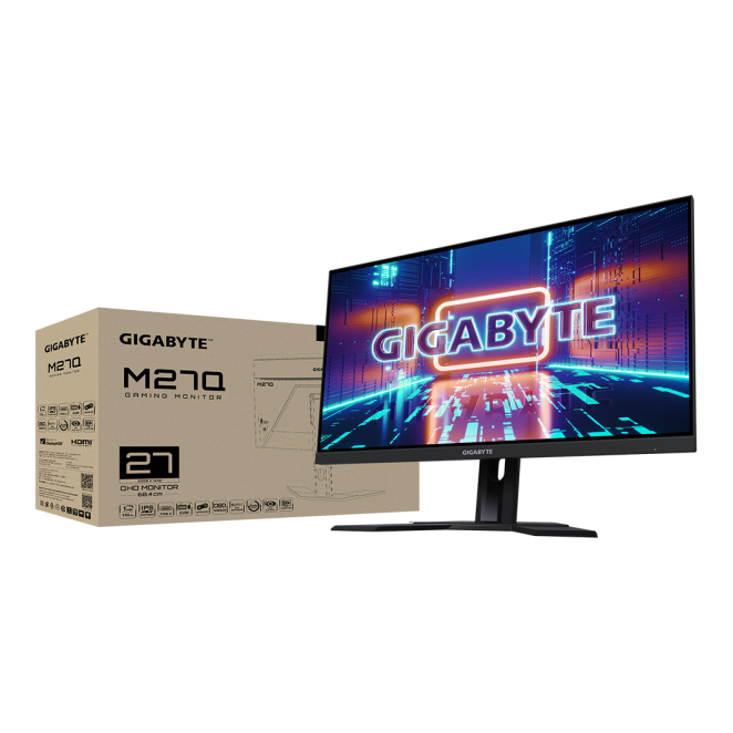 Monitor para PC GIGABYTE M27Q de 27 pulgadas, resolución 2560 x 1440 Pixeles Quad HD, tecnología LED, en color negro. SKU: M27Q