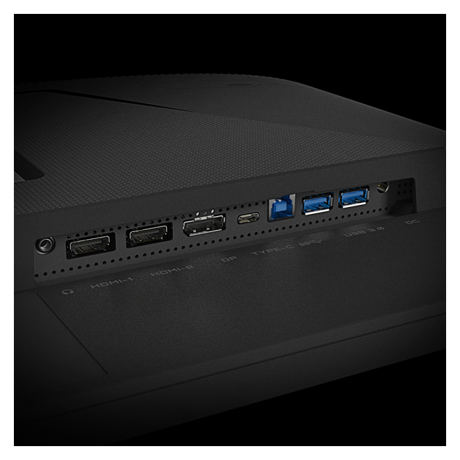 El GIGABYTE M27Q incluye dos puertos HDMI 2.0, un DisplayPort 1.2, y múltiples puertos USB, incluyendo USB 3.2 Gen 1 y un puerto USB tipo C.