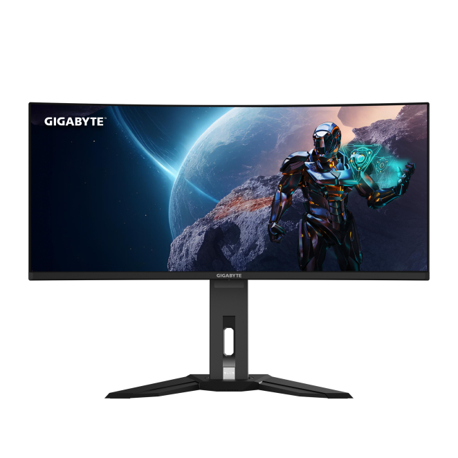 Monitor curvo OLED WQHD de 34 pulgadas de GIGABYTE con una resolución de 3440 x 1440, frecuencia de 175Hz, tiempo de respuesta de 0.03ms y compatible con FreeSync Premium Pro. SKU: MO34WQC