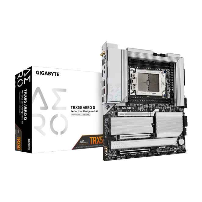 GIGABYTE TRX50 AERO D Placa base – Compatible con AMD Ryzen Threadripper 9000 Series CPUs, 16+8+4 Phases Digital VRM, up to 7800MHz DDR5 (OC), 3xPCIe 5.0 + 1xPCIe 4.0 M.2, Wi-Fi 7, 10GbE LAN, USB4
