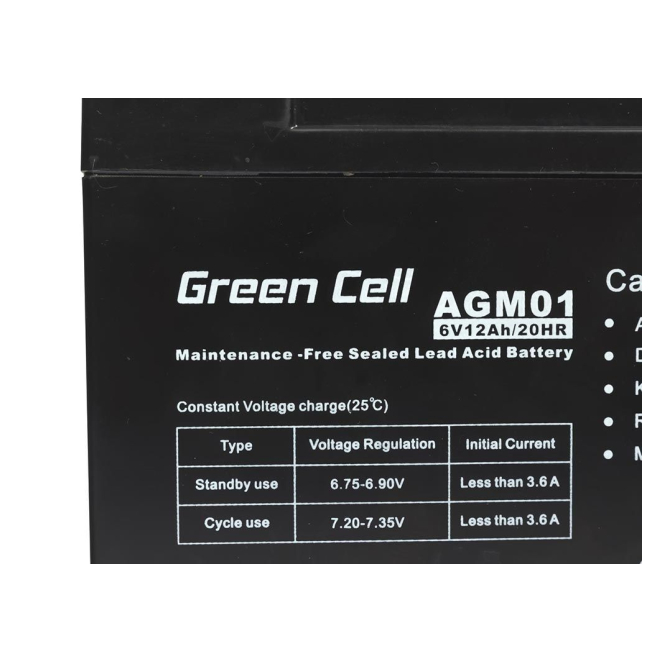 Green Cell AGM Battery 6V 12Ah – Batterie – 12.000 mAh Sealed Lead Acid (VRLA)