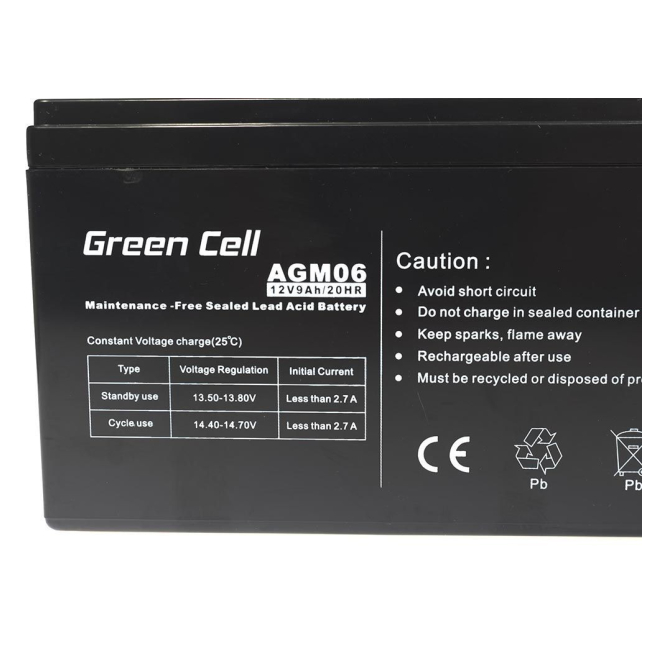 Batería Green Cell AGM06, Sealed Lead Acid (VRLA), 12 V, 9 Ah, ideal para sistemas UPS, SKU AGM06