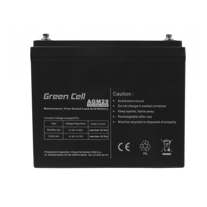Green Cell AGM25 batería para sistema ups Sealed Lead Acid (VRLA) 12 V 75 Ah