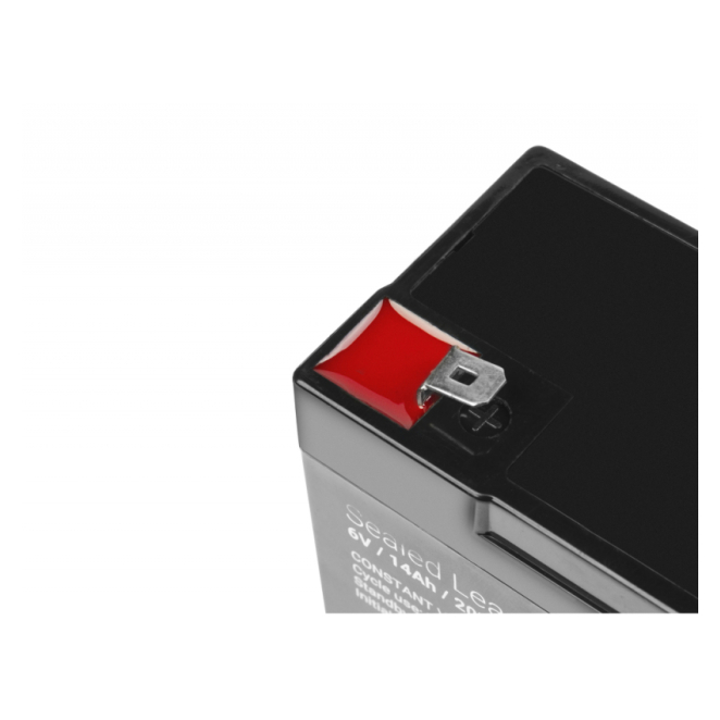 Vista de la batería Green Cell AGM34 para sistemas UPS, Sealed Lead Acid VRLA, que ofrece 6V y una capacidad de 14Ah