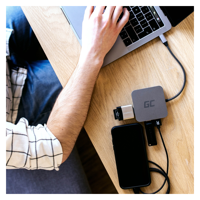Green Cell AK61 base para portátil y replicador de puertos USB 3.2 Gen 1 (3.1 Gen 1) Type-C Plata. SKU: AK61