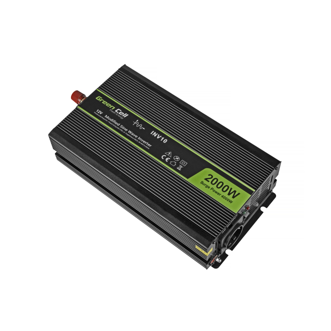 Green Cell INV10 adaptador e inversor de corriente para automóvil con potencia de 2000 W en color negro. SKU: INV10