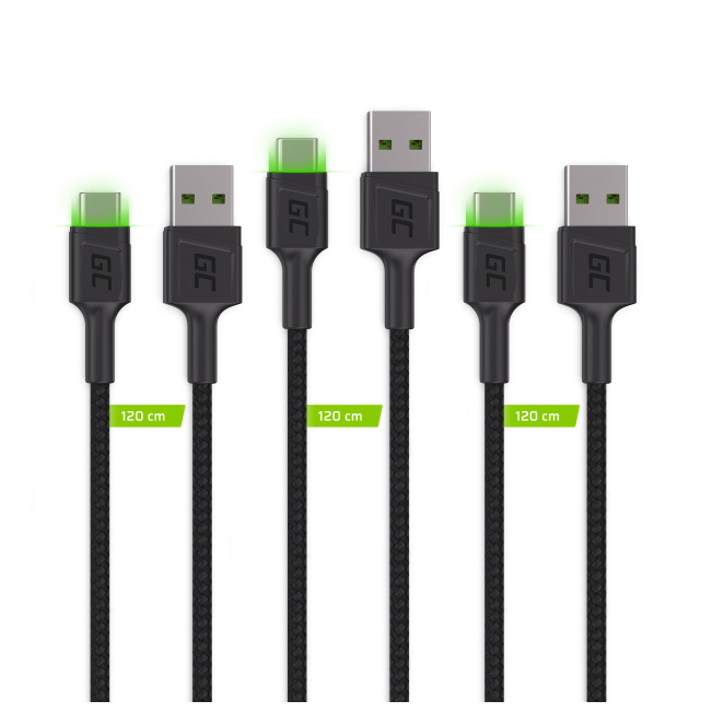 Green Cell KABGCSET02 cable USB de 1,2 metros con conector USB A a USB C en color negro