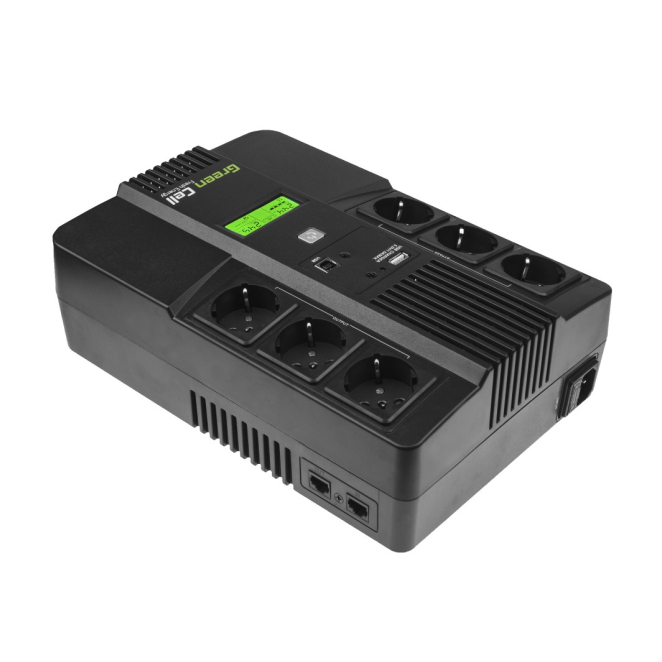 Sistema de alimentación ininterrumpida Green Cell AiO 800VA con LCD, Línea interactiva, 0,8 kVA 480 W, 6 salidas AC. SKU: UPS07