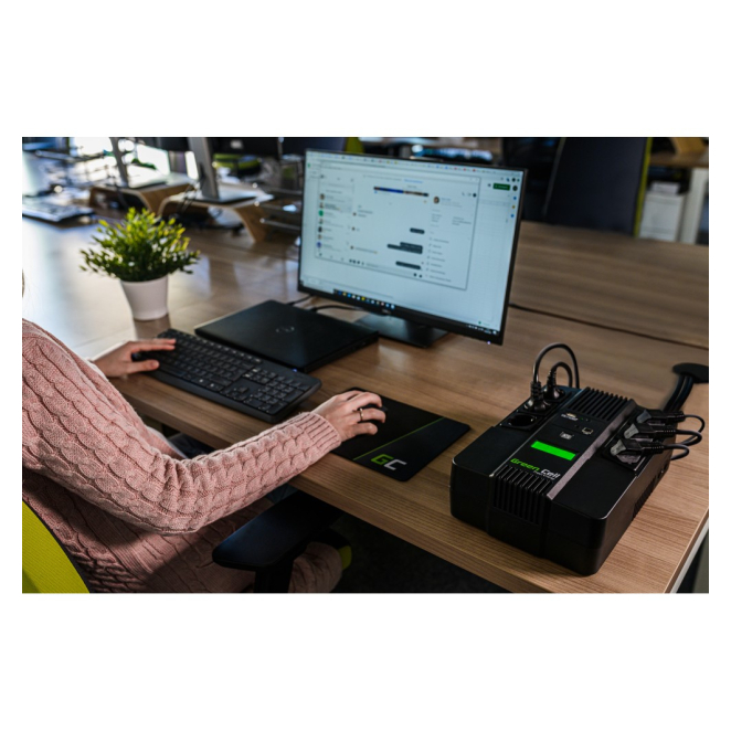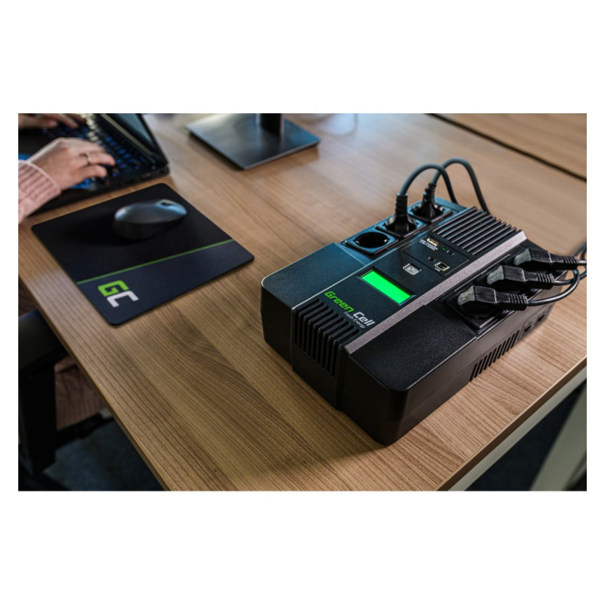 El Green Cell AiO 800VA LCD es perfecto para profesionales y hogares que desean proteger sus dispositivos electrónicos contra interrupciones inesperadas de energía. Ya sea para equipos de oficina como computadoras, routers y NAS, o para dispositivos del hogar como televisores y consolas de videojuegos, este UPS garantiza que todos ellos estén protegidos de manera efectiva. Su capacidad para soportar hasta 480 W de carga lo hace ideal para usuarios que manejan múltiples dispositivos a la vez, proporcionando tranquilidad y seguridad en todo momento.