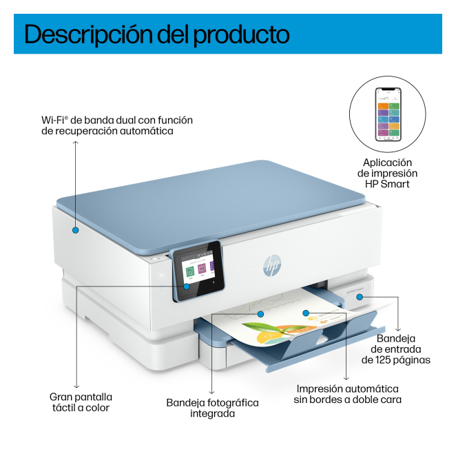 La **HP ENVY Inspire 7221e** permite imprimir, escanear y copiar, siendo una verdadera solución todo en uno para el hogar o la oficina.