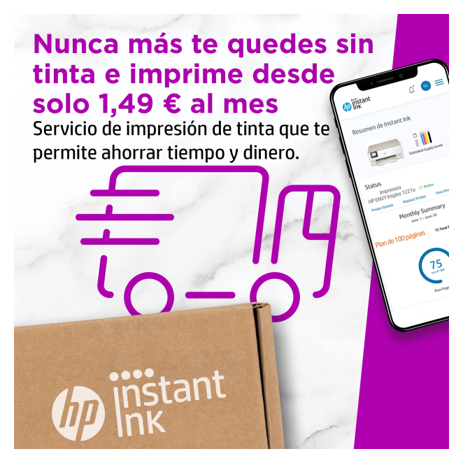 Sí, la **HP ENVY Inspire 7221e** es compatible con HP Instant Ink, lo que facilita un suministro continuo de tinta sin salir de casa.