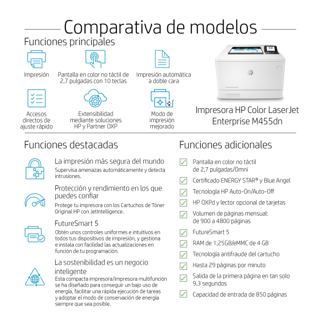 La HP Color LaserJet Enterprise Impresora M455dn es una elección inteligente para aquellos que buscan eficiencia y calidad en sus procesos de impresión. A continuación, se presentan algunas razones para comprar esta impresora: